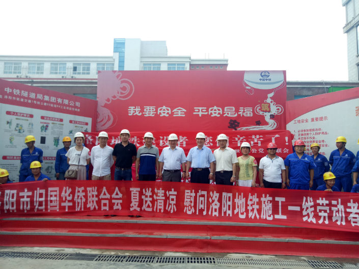 7月19日,市侨联、致公党、市留联会和宏进农副产品批发市场相关负责人顶着炎炎烈日到地铁应天门站和七里河站看望地铁建设一线工人。市侨联党组书记夏德刚,市侨联主席、致公党洛阳市总支部主委蔡根喜,市侨联副主席、市留联会秘书长贾锁文,宏进农副产品批发市场营销总经理麦均参加了活动。慰问地铁建设一线工人