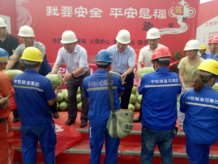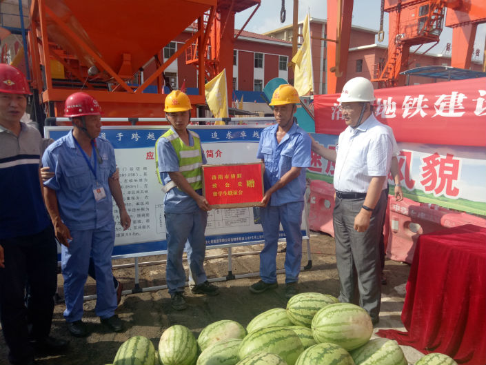 近期,洛阳市持续高温,为了保证地铁建设工人安全生产,避免夏季高温中暑,市侨联、致公党、市留联会和宏进农副产品批发市场联合为300多名工人送去5000斤西瓜和毛巾、风油精、藿香正气水等价值1万多元的防暑降温物品和药品,并感谢他们为洛阳市轨道建设做出的贡献。